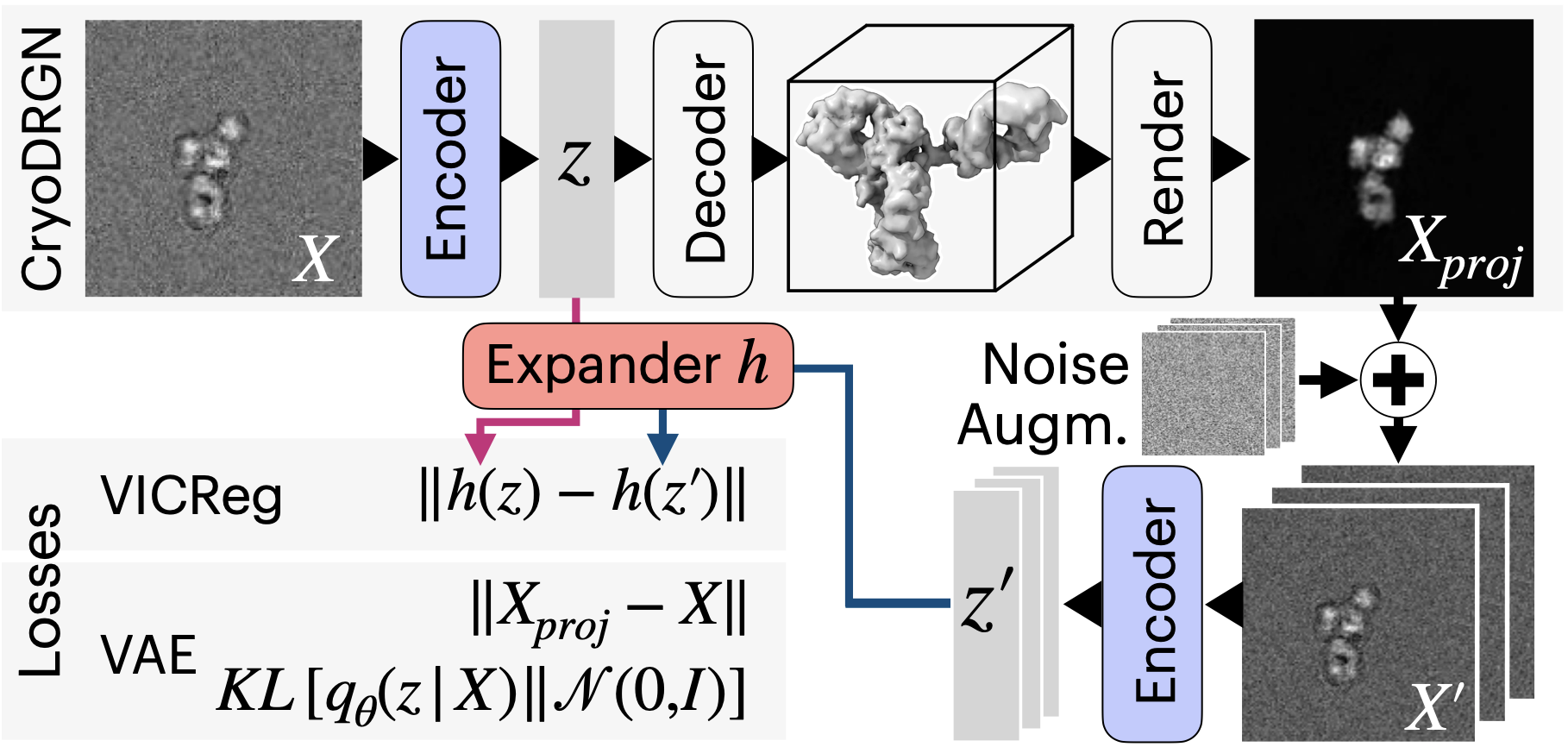 We propose Cryo-No-Overfit (CryoNOO), which extends CryoDRGN via self-distillation by leveraging the reconstruction method itself as a denoiser to generate augmented views of training images.